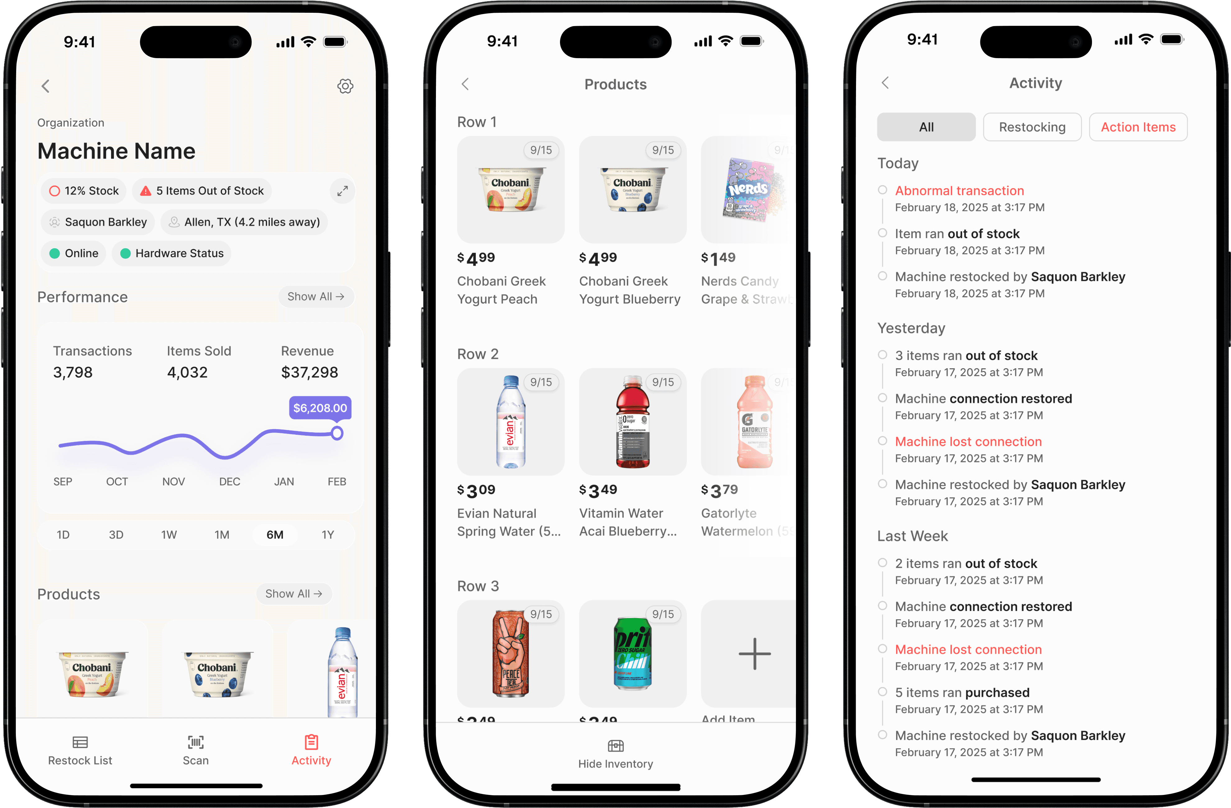 Everything you need to run smarter, sleeker vending machines - from live dashboards to automatic stock alerts.