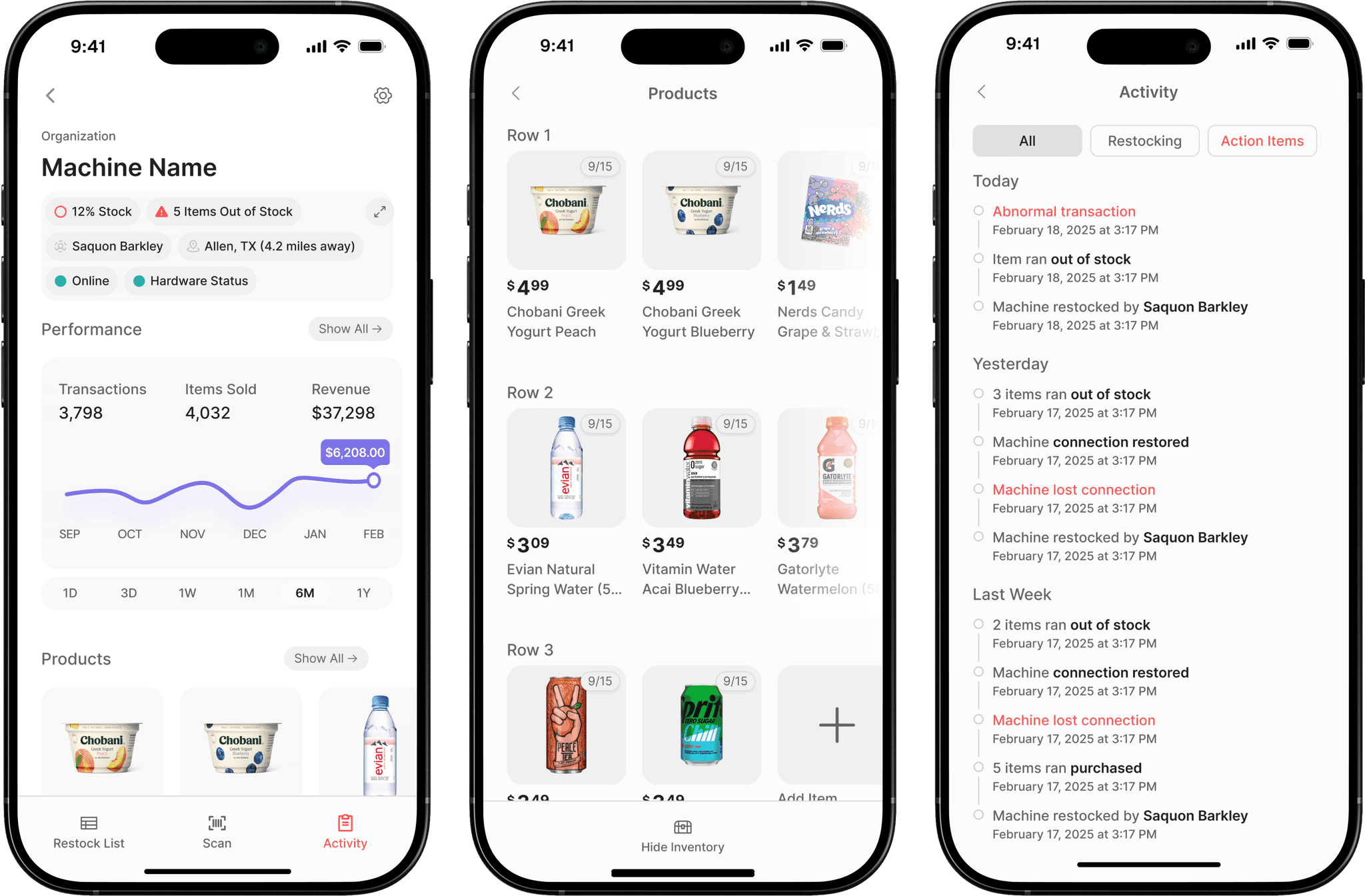 Everything you need to run smarter, sleeker vending machines - from live dashboards to automatic stock alerts.